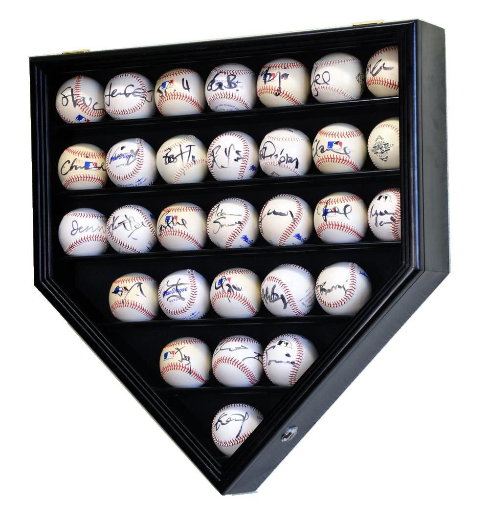 Display them in this beautiful 30 Baseball Ball Display Case Cabinet, designed with a unique home plate shape and shelf indentations to securely hold 30 baseballs.