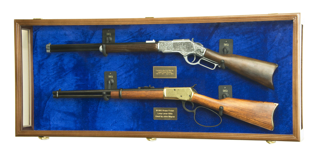 This gun display case accommodates up to 2 rifles. Protected by our ultra-clear specially-coated, UV-protection acrylic. Beautiful clear views from all sides of the display. The felt background adds a visual contrast for your rifles. 1 rifle mounting kit (2 padded metal hooks) is included in your package and installed at your discretion to fit a rifle of any length/size**. Case comes fully assembled. Mounting hardware is shipped in the same package.