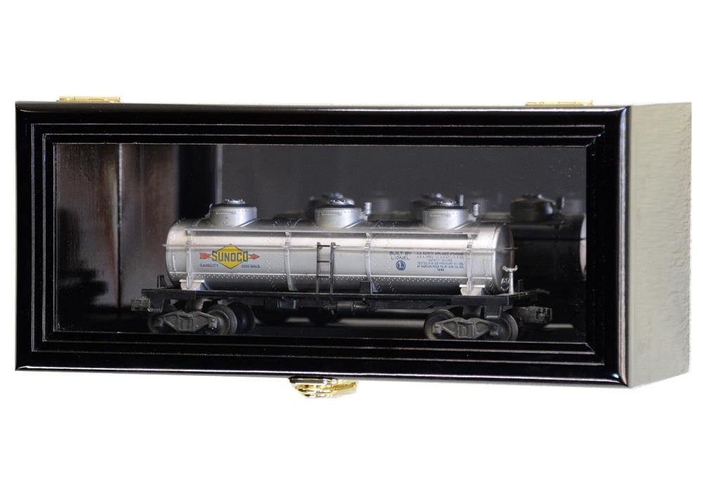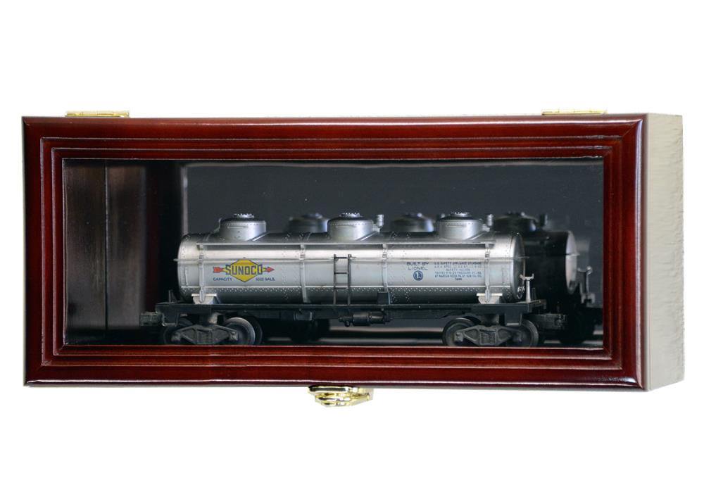 This train display case features a single compartment to fit an O scale train model (such as engine/locomotive, trailers, cabs, and tankers). Protected by our ultra-clear, specially-coated, UV-protection acrylic. Case comes fully assembled. Heavy duty wall mounting kit included. Mounting hardware shipped in the same package.